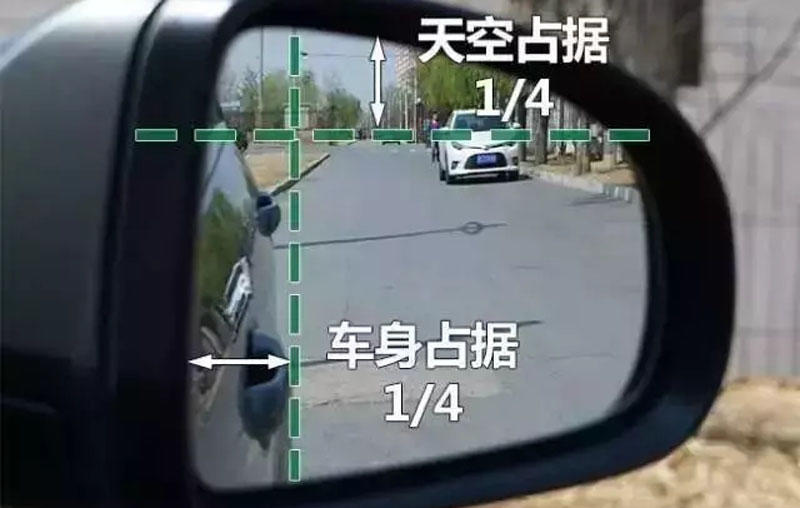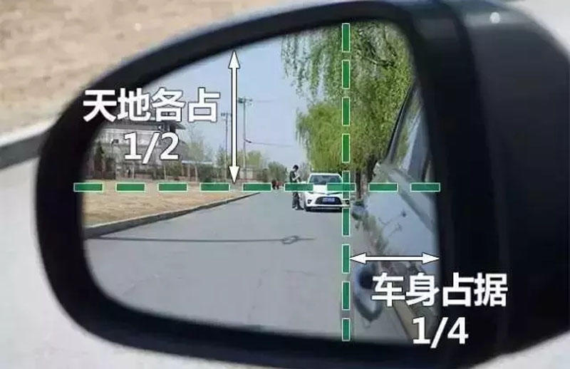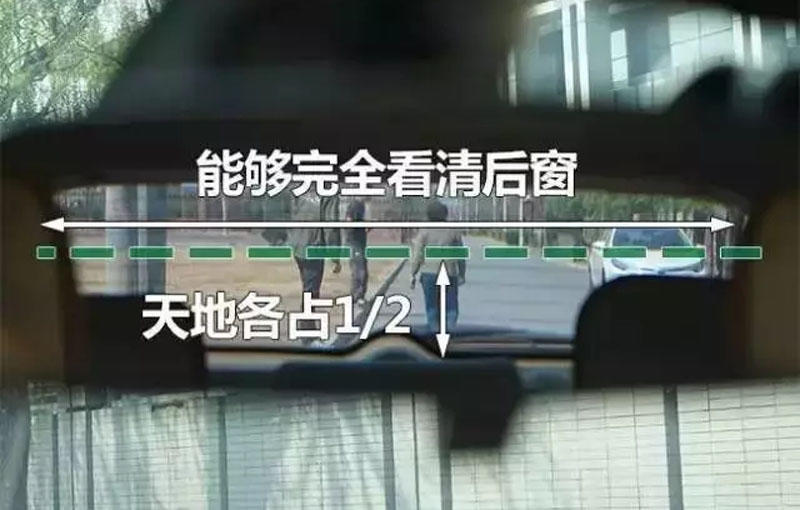 大家都说与地平线平行,说法是有道理的,但是地平线也不是那么好找的。因此在这里就有一个诀窍,天地各一半,这样的话就能够清晰的看到后方车辆。